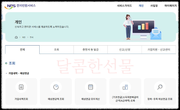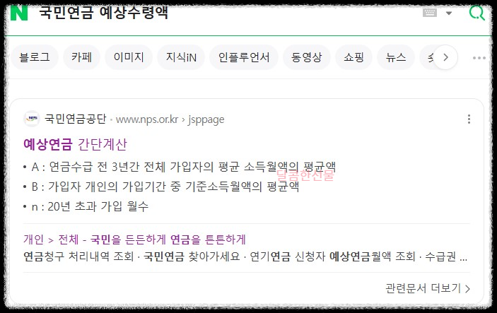 nps 전자민원센터로 들어가서 개인 -> 전체 -> 조회 -> 예상연금액 조회를 클릭하시면