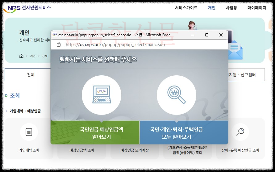 창이 하나뜨면서 국민연금 예상연금액 알아보기가 뜹니다.