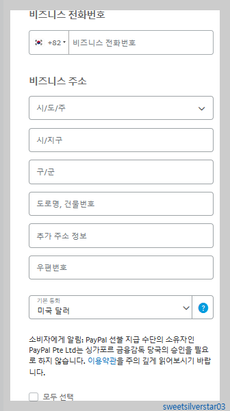 -페이팔 비즈니스 계정 정보 입력(담당자의 법적 이름과 성을 따로 입력)