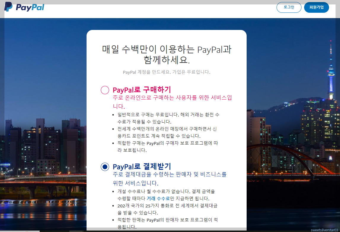 - 네이버에서 페이팔 검색 -> 페이팔 코리아 사이트로 접속 또는 모바일 플레이 스토어 페이팔 앱 설치